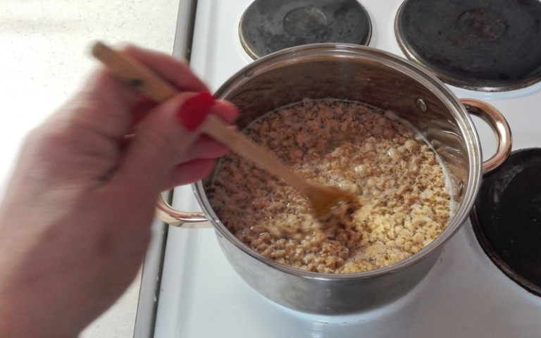 3. Pořádně zamícháme, aby se granulát spojil s vývarem.