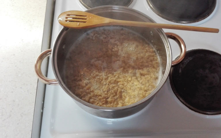 4. Přivedeme k varu. Jakmile začne tato směs vařit, stáhneme oheň na střední stupeň a vaříme 15 minut, občas zamícháme.