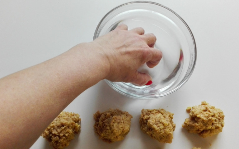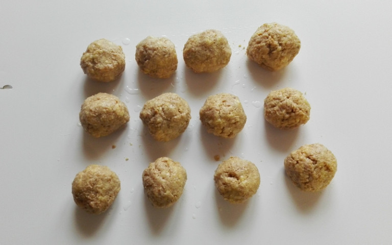 26. Teď pomocí prstů stlačíme každou kouličku a už se nám začínají před očima rýsovat naše sekané řízečky.