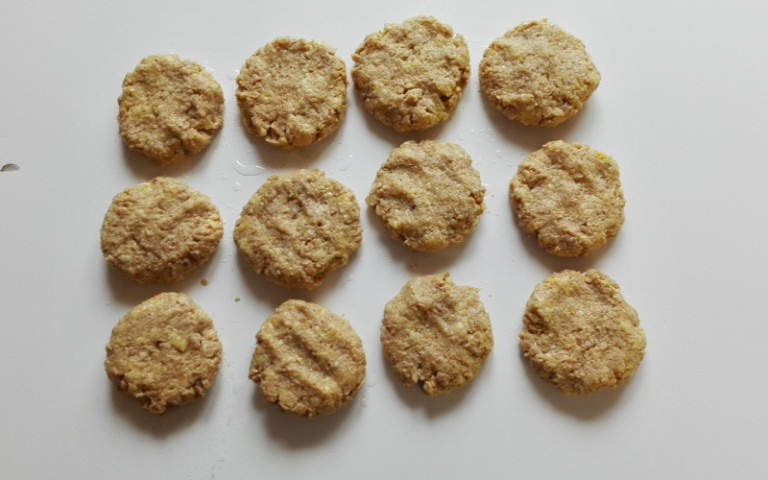 27. Nyní máme před sebou z kouliček vytvořené placičky.