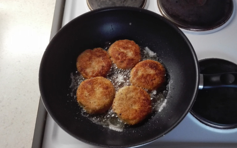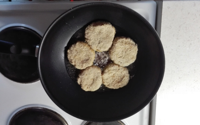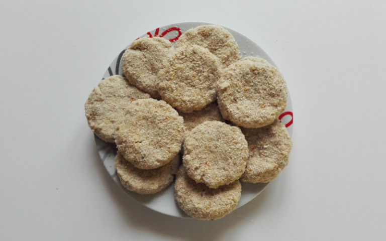32. Teď máme skoro hotovo, všechny placičky jsou obalené a už jen zbývá je usmažit.