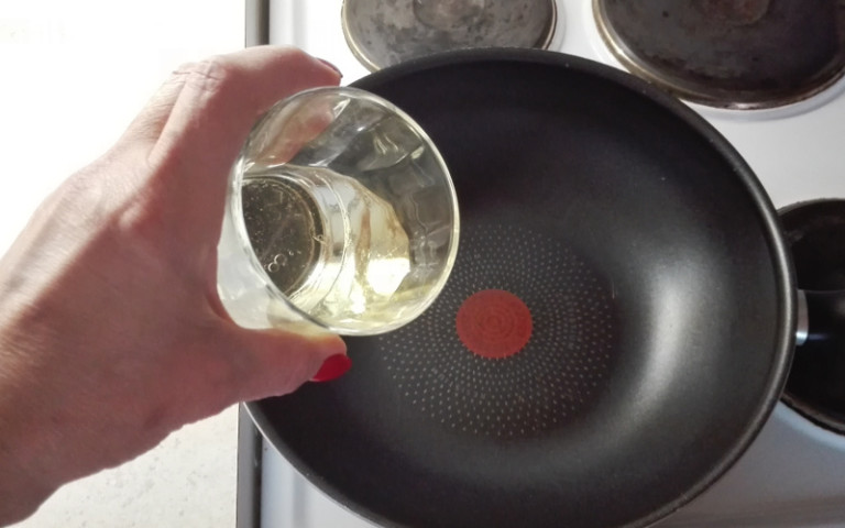 34. Olej nalijeme do pánve a rozpálíme. Oheň máme na nejvyšším stupni.